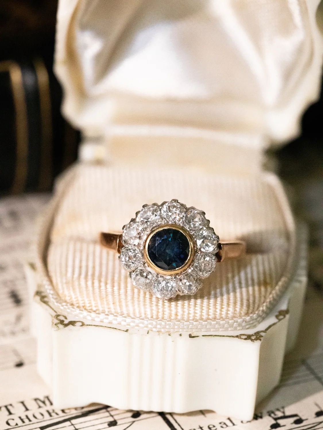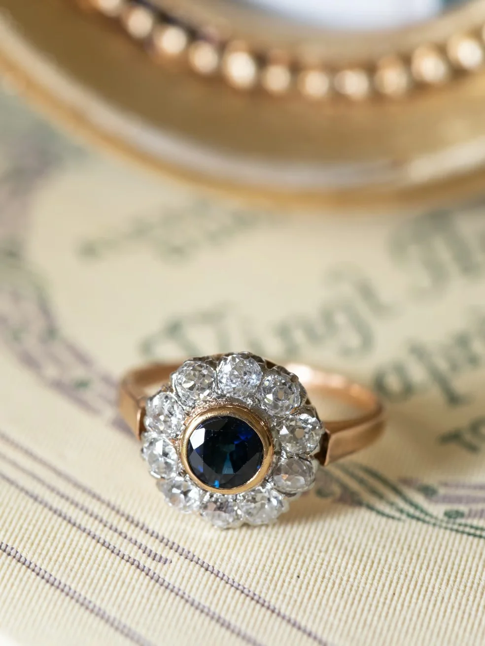 LA ELEANOR, sublime bague ancienne fleur Belle Epoque (fin XIXe siècle, vers 1890) saphir en serti clos & diamants ✨