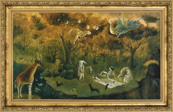 LA LEONORA tient son inspiration de Leonora Carrington, célèbre artiste du XXᵉ siècle, grande figure du surréalisme. Ses œuvres, peuplées de créatures fantastiques et de paysages oniriques, mêlent rigueur formelle et poésie mystérieuse. À l’image de ses toiles, cette bague marie la précision géométrique - chère à l’Art Déco - à la magie d’une palette de verts vibrants. L’émeraude centrale évoque la force vitale et le mystère de ses rêves éveillés, tandis que le double halo de pierres symbolise les cercles de symboles et de récits qui peuplent son univers.